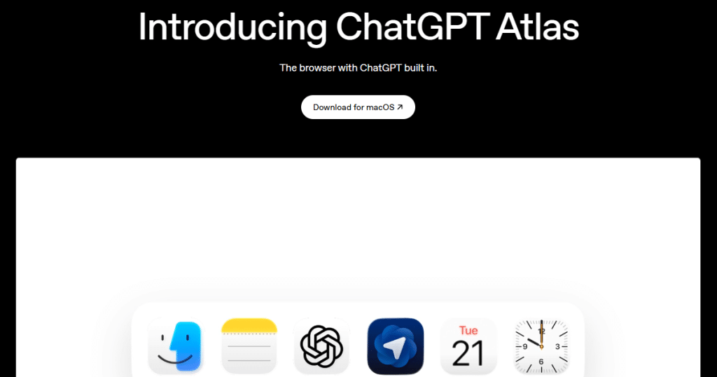 ChatGPT Atlas a fost lansat pe 21 octombrie 2025 ca un browser web construit în jurul ChatGPT, nu ca o extensie pentru un browser existent. Versiunea inițială este disponibilă pe macOS, iar edițiile pentru Windows, iOS și Android sunt anunțate. Atlas intră în competiție directă cu Chrome și alte browsere AI.