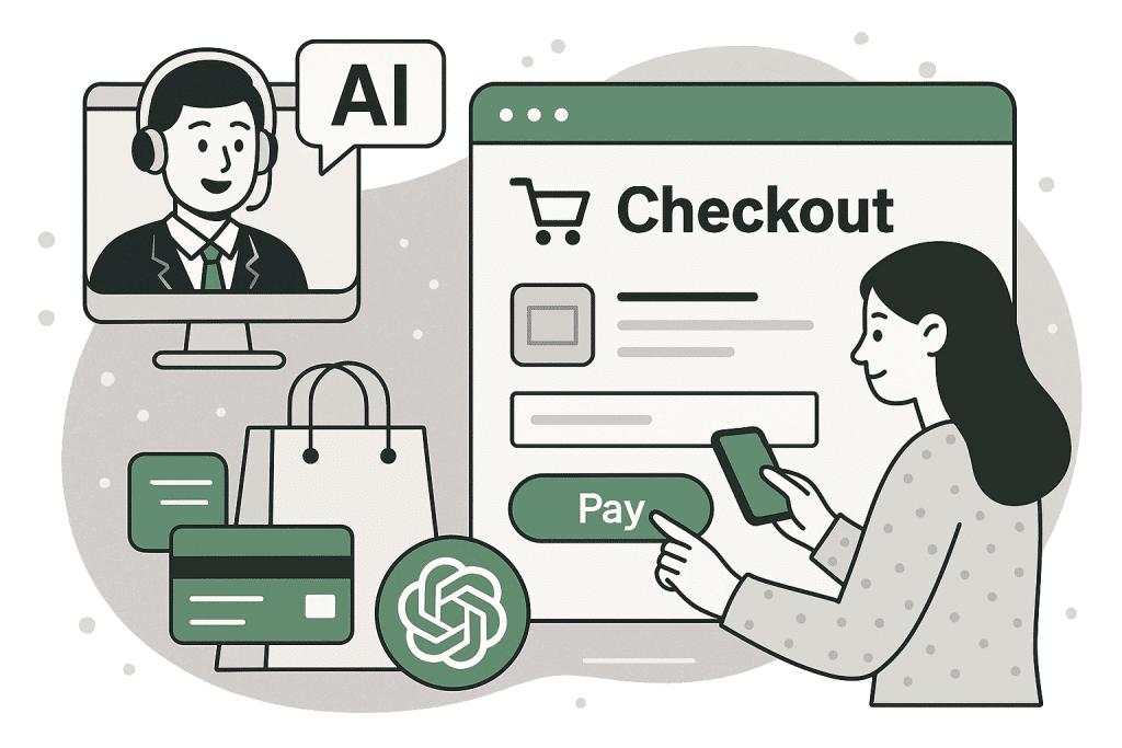 Pe 29 septembrie 2025, OpenAI a activat „Instant Checkout” în ChatGPT: utilizatorii pot cumpăra produse direct în conversație. Lansarea a început cu articole individuale de la vânzători Etsy din SUA, cu extindere treptată către comercianți Shopify. Plățile sunt procesate prin portofele cunoscute și procesatori consacrați, iar OpenAI și Stripe propun un standard deschis numit Agentic Commerce Protocol (ACP).