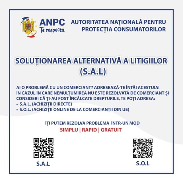 - o pictogramă pentru soluționarea alternativă a litigiilor cu link spre https://anpc.ro/ce-este-sal/