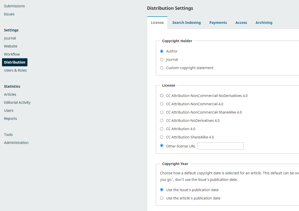 Aveți posibilitatea de a publica articole și probleme online și să le indexați pe deplin în serviciile de descoperire globale, cum ar fi Google Scholar, Crossref, DOAJ și multe altele.